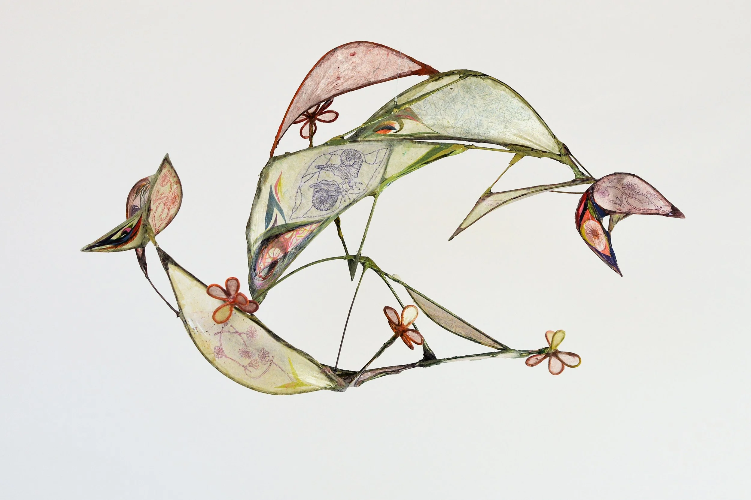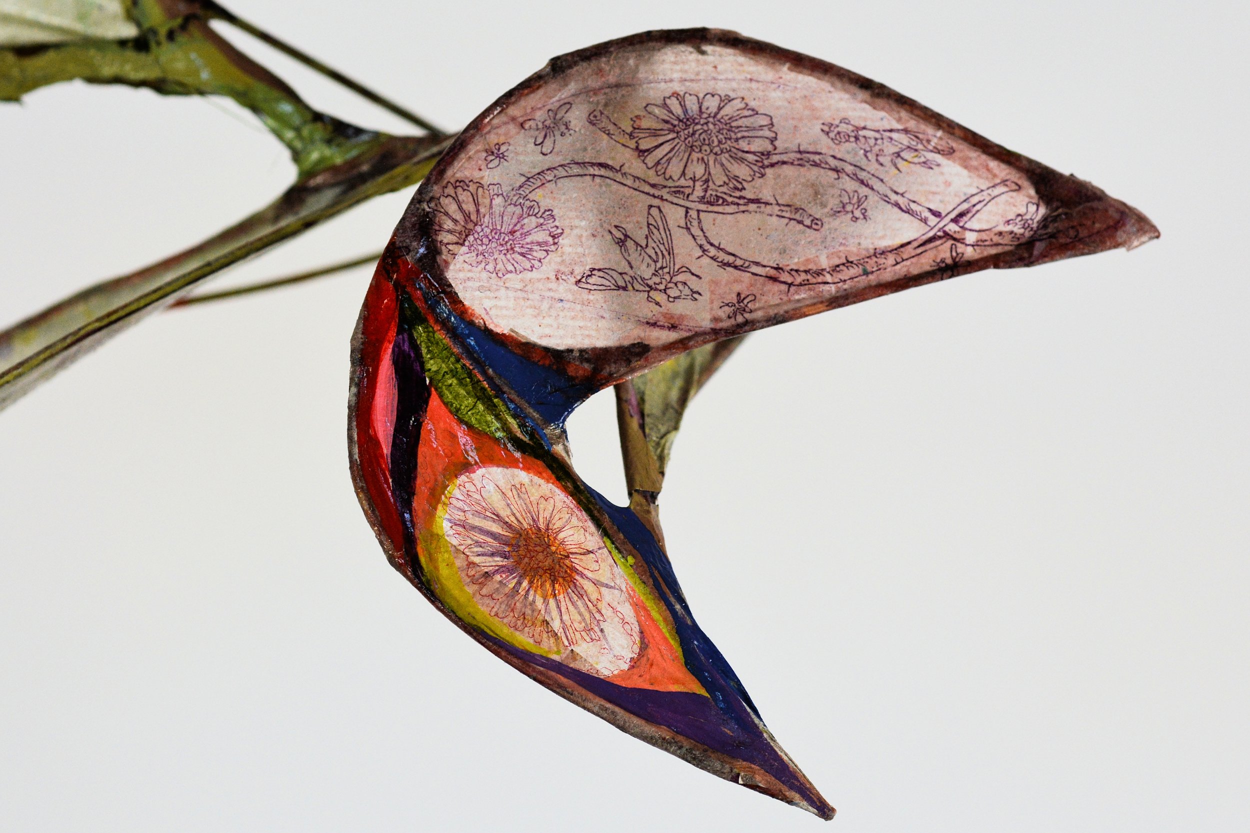 “Untitled (internal bloom)” 2024, handmade abaca paper (with watermarks and intaglio prints), wood, acrylic, 11”x21”x13”