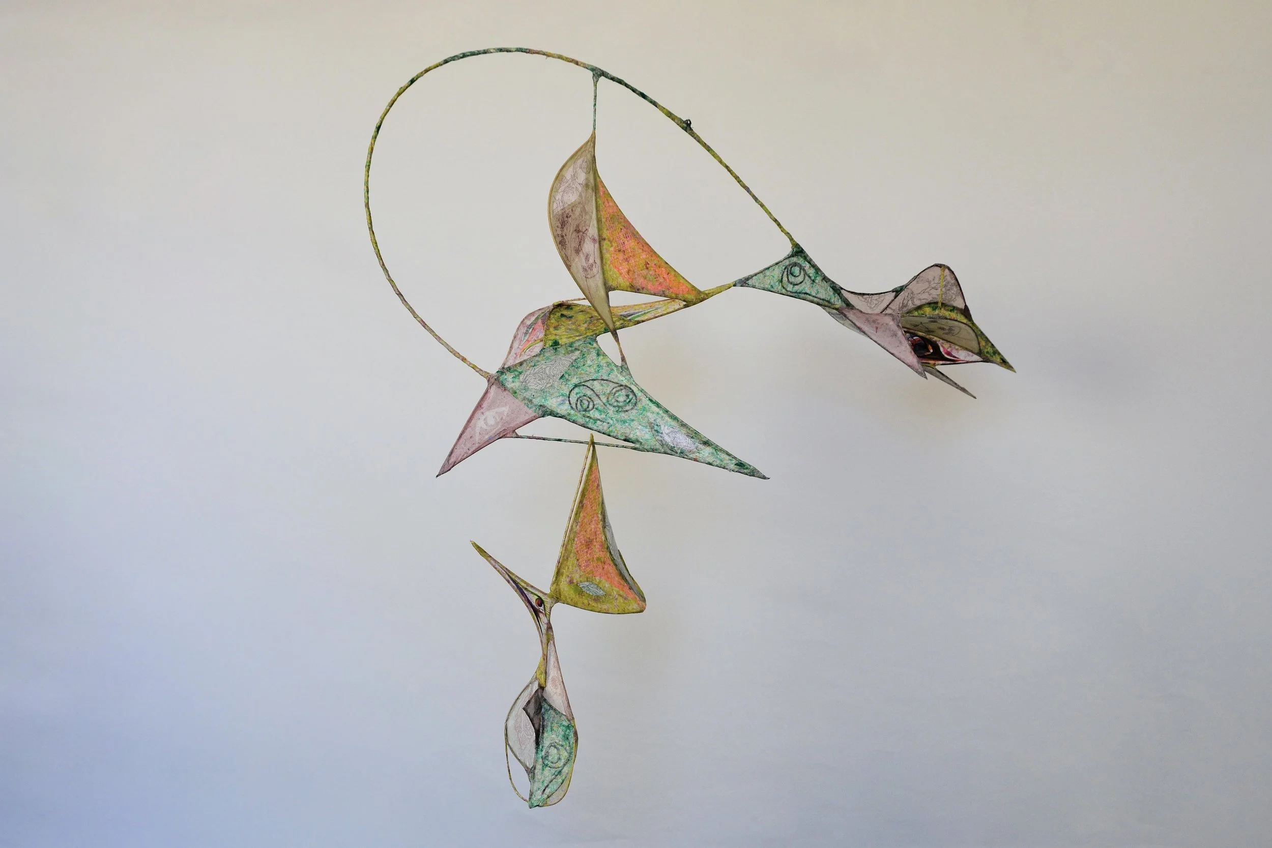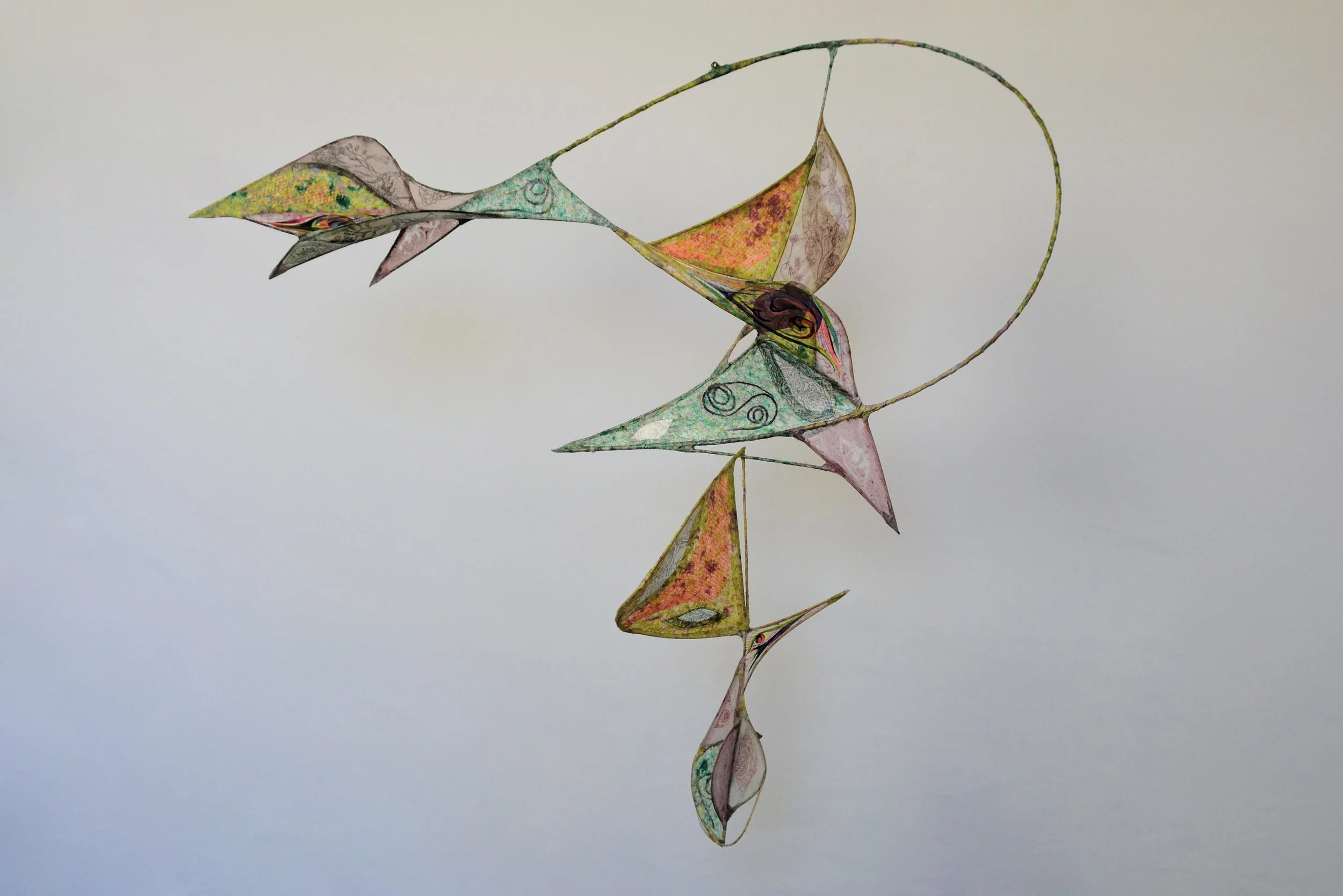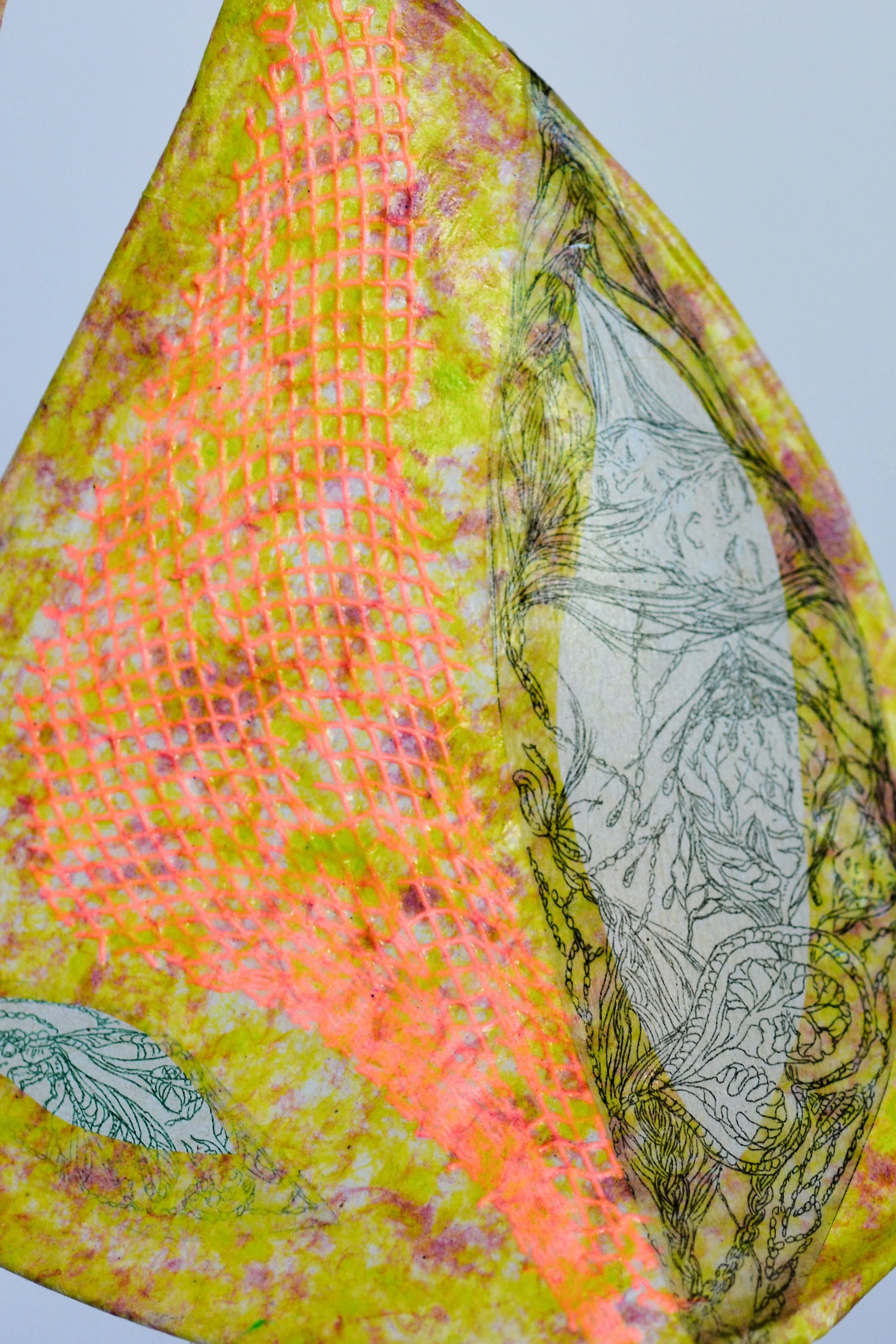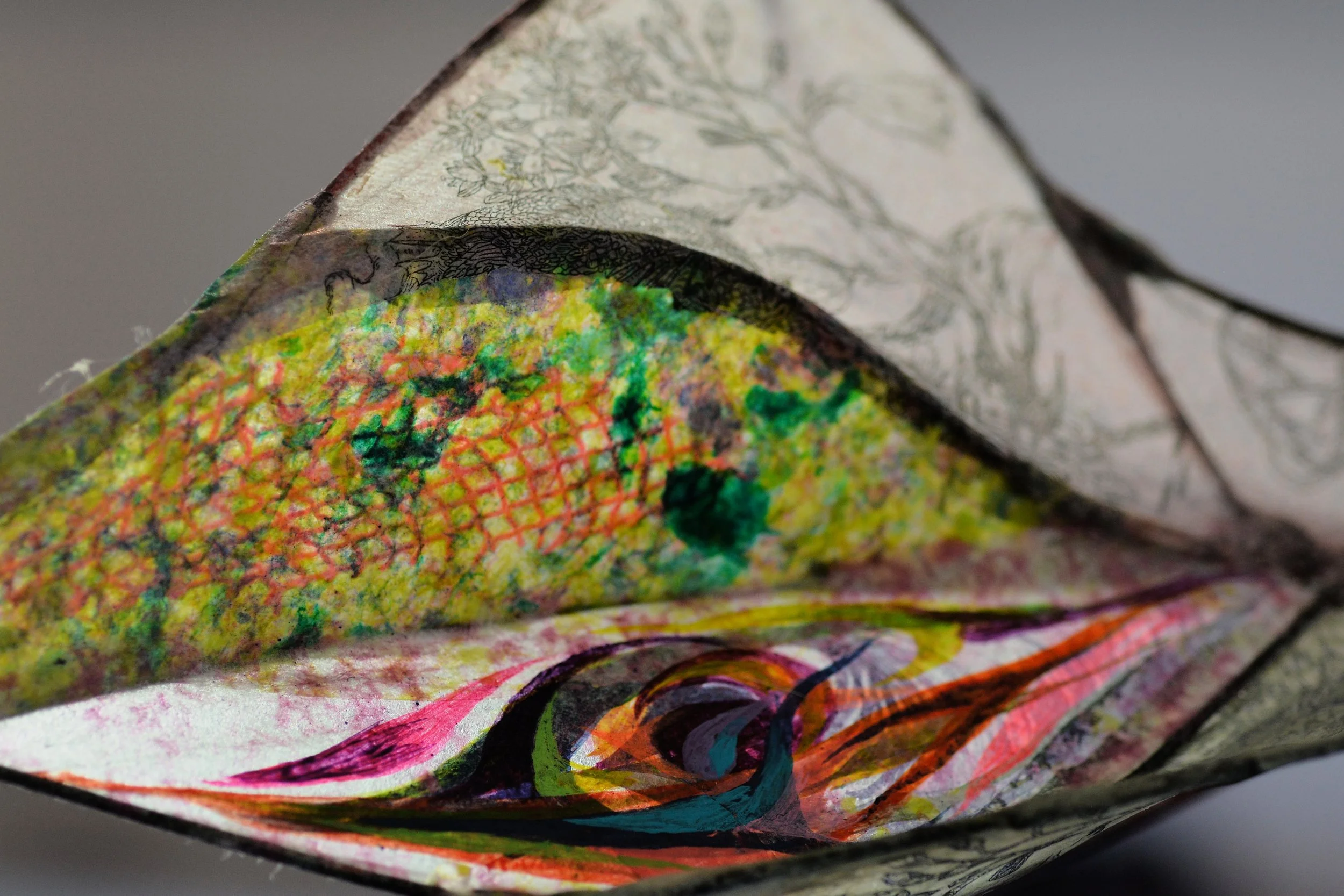 “Untitled (dusk to dawn 1)”, 2026, handmade abaca paper, wood, acrylic, embedded fiber, etching, 30”x30”x11”